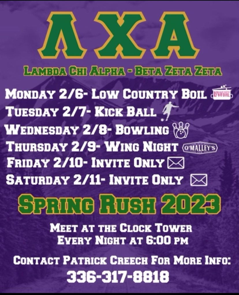 Our actives put on a heck of a week of events, led by the Rush Chairman, BZ 854 Patrick Creech. The rush poster is below.