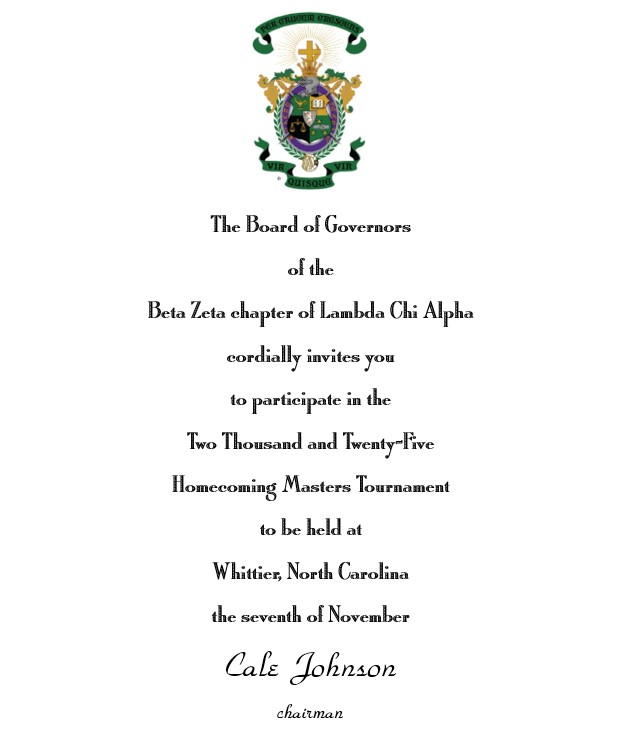 Good evening brothers. The Beta Zeta alumni association is sponsoring a hole in the 2025 Bob Waters Memorial Golf Tournament which will be played on September 12th at Sequoyah National in Cherokee. We don’t know which hole it will be so please keep an eye out for the flag. Design below. Thanks!